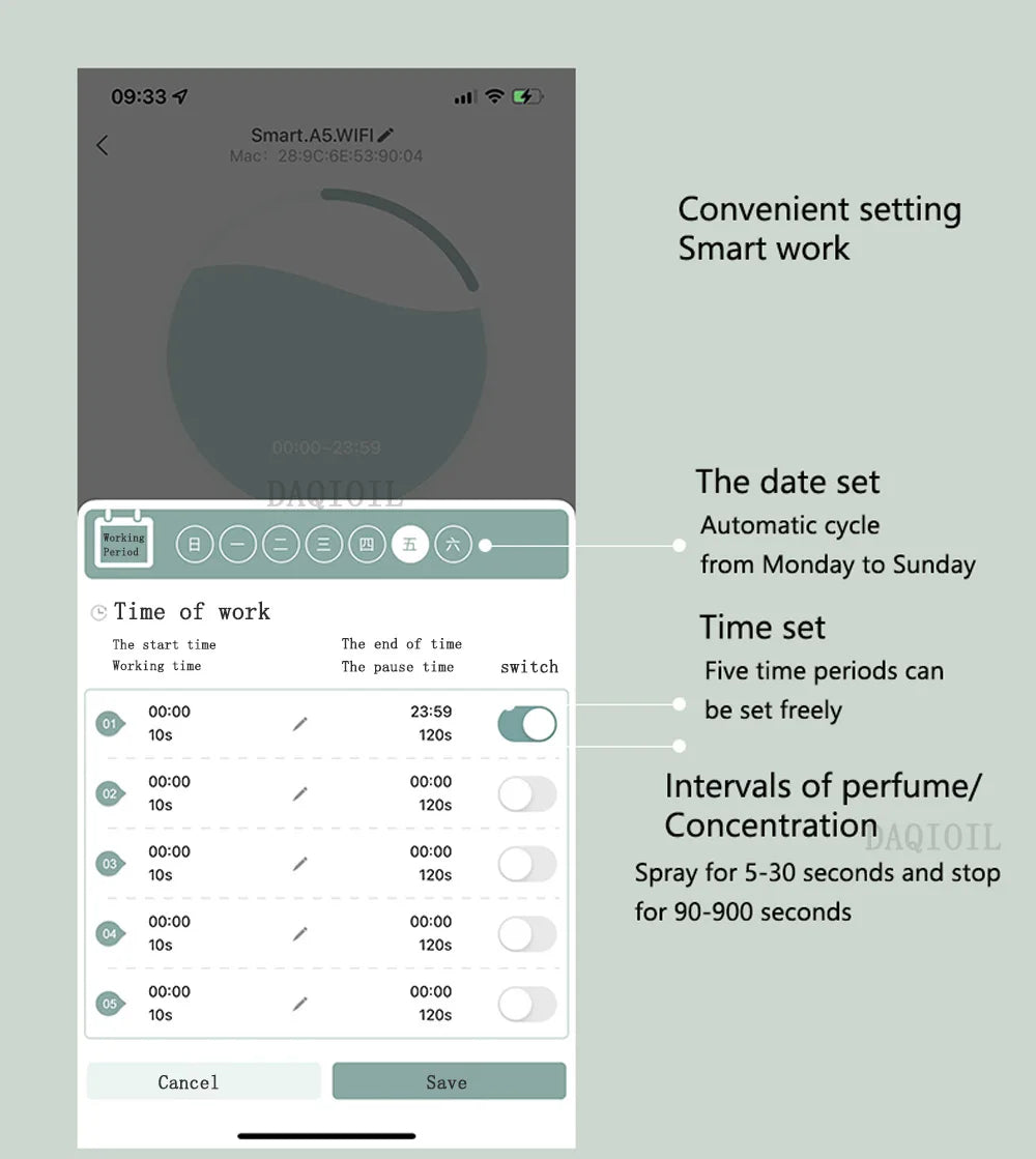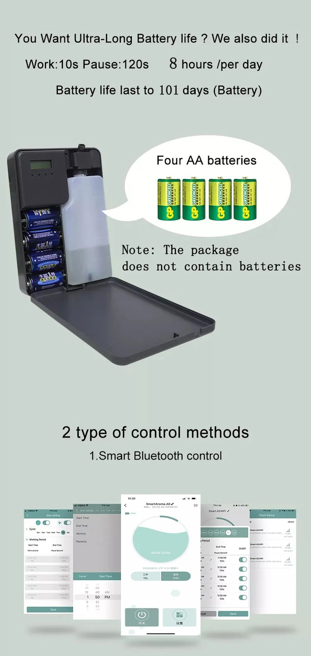Smart Control: Adjustable intensity settings for personalized scent levels.