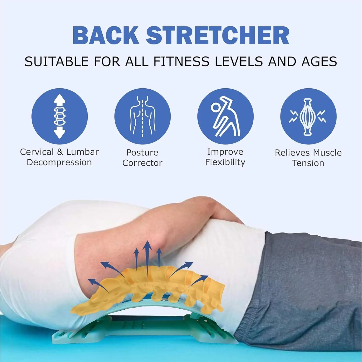 Adjustable Back & Spine Stretcher — Multi-Level Lumbar and Cervical Support Massager for Posture Alignment, Tension Relief & Fitness Recovery