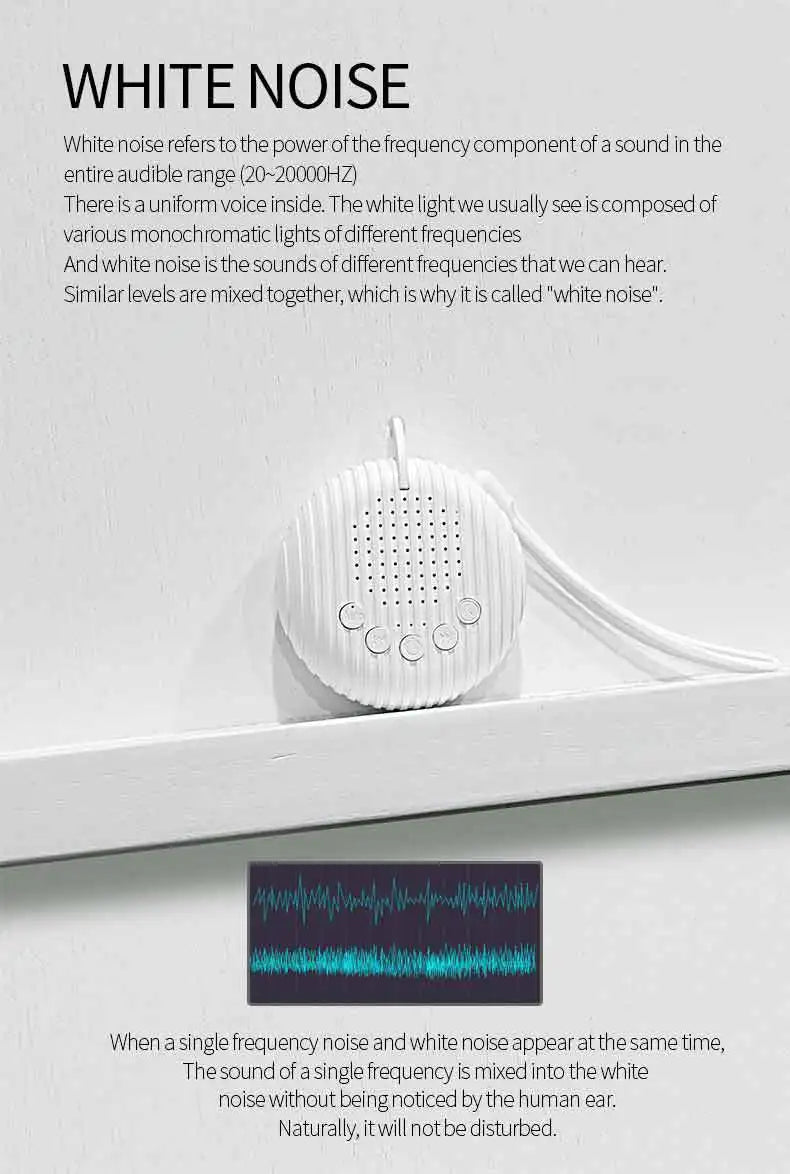 “A portable white noise machine designed to soften distractions and support calm moments—creating peaceful soundscapes for sleep, relaxation, and focus at home, at work, or while traveling.”