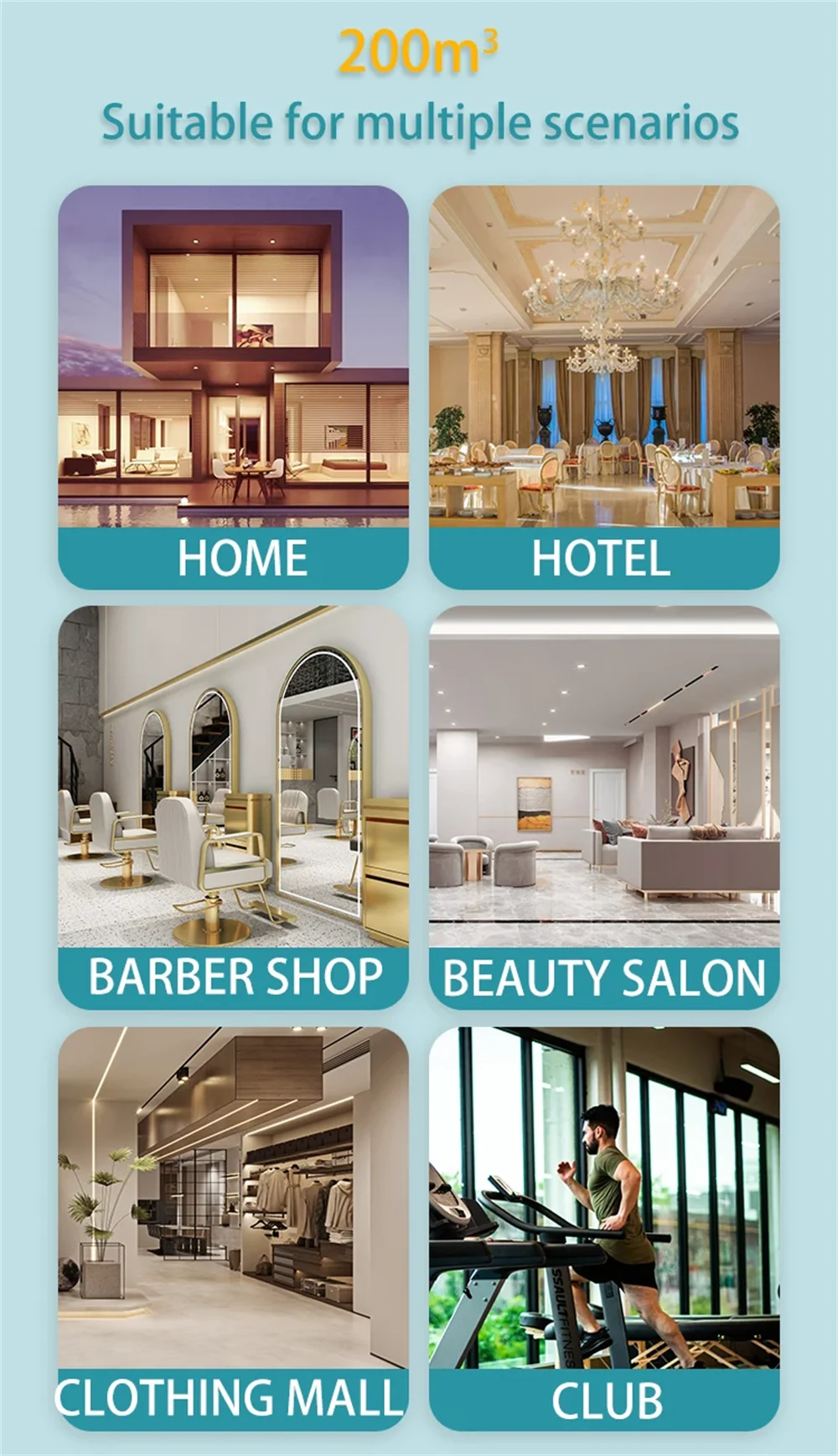 Using advanced cold-air atomization and Bluetooth APP control, this premium scent system disperses ultra-fine fragrance particles evenly across rooms up to 200 m³, filling every corner with refined, lasting aroma.