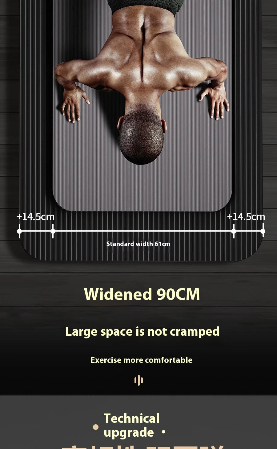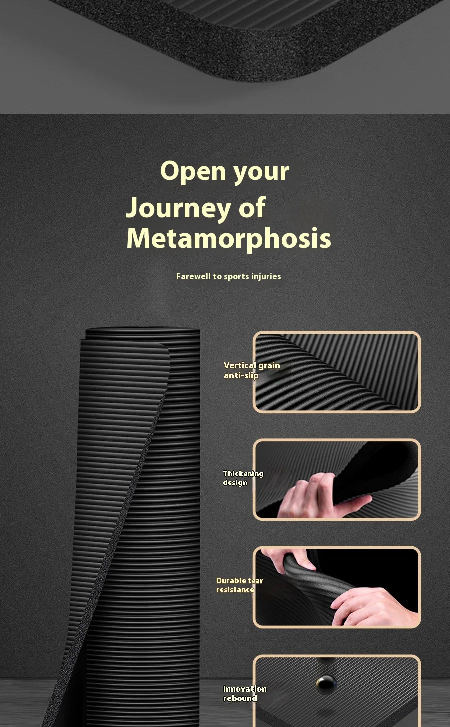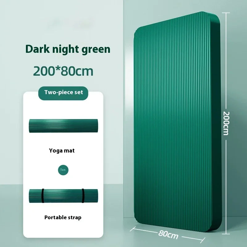 Designed for stability and comfort, this NBR thickened yoga mat provides a soft yet firm base for every stretch, pose, and movement. Its anti-skid surface keeps you steady through intense sessions — whether for yoga, pilates, cardio, or meditation — while the shock-absorbing cushion supports your joints and muscles.