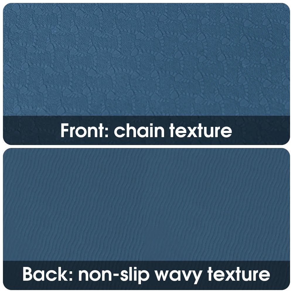 Crafted from eco-friendly TPE material, this premium yoga and meditation mat delivers exceptional comfort, grip, and portability. Its dual-texture surface ensures firm stability on every pose — a peach-heart pattern on top for soft traction, and wavy grip underneath for anti-slip control.